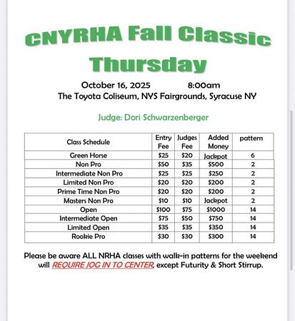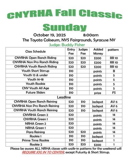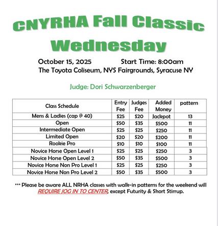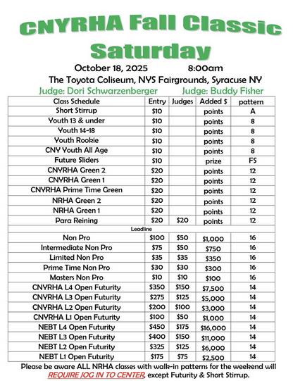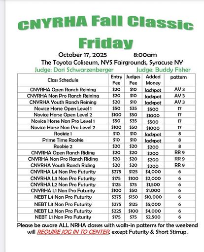 See CNYRHA Facebook Pagefor Entry Information, Show Bills, Times, Reservation Forms and Stall Charts